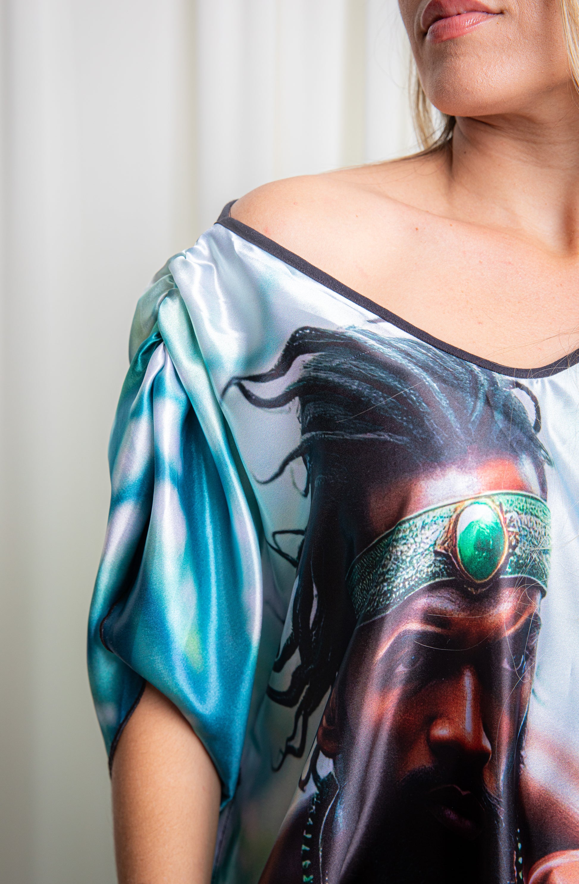 Ogún, orisha del trabajo, la fuerza y la protección, se refleja en esta batola con una presencia firme y poderosa. Diseñada para mujeres luchadoras, emprendedoras y protectoras, es una prenda que simboliza disciplina, constancia y determinación espiritual.
